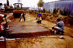 Während hier noch an der Sohlplatte gearbeitet wird, wachsen im Hintergrund bereits die Wände. |