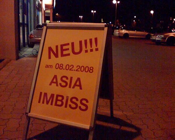 Der ASIA - Imbiss hat seit dem 08.02.08 auch für Sie in unserem Gewerbepark ( 10 bis 20 Uhr ) geöffnet.
